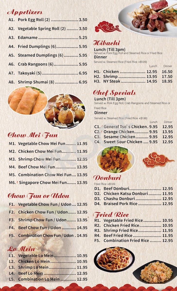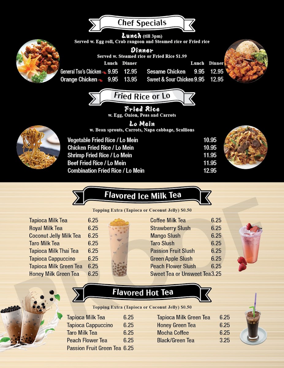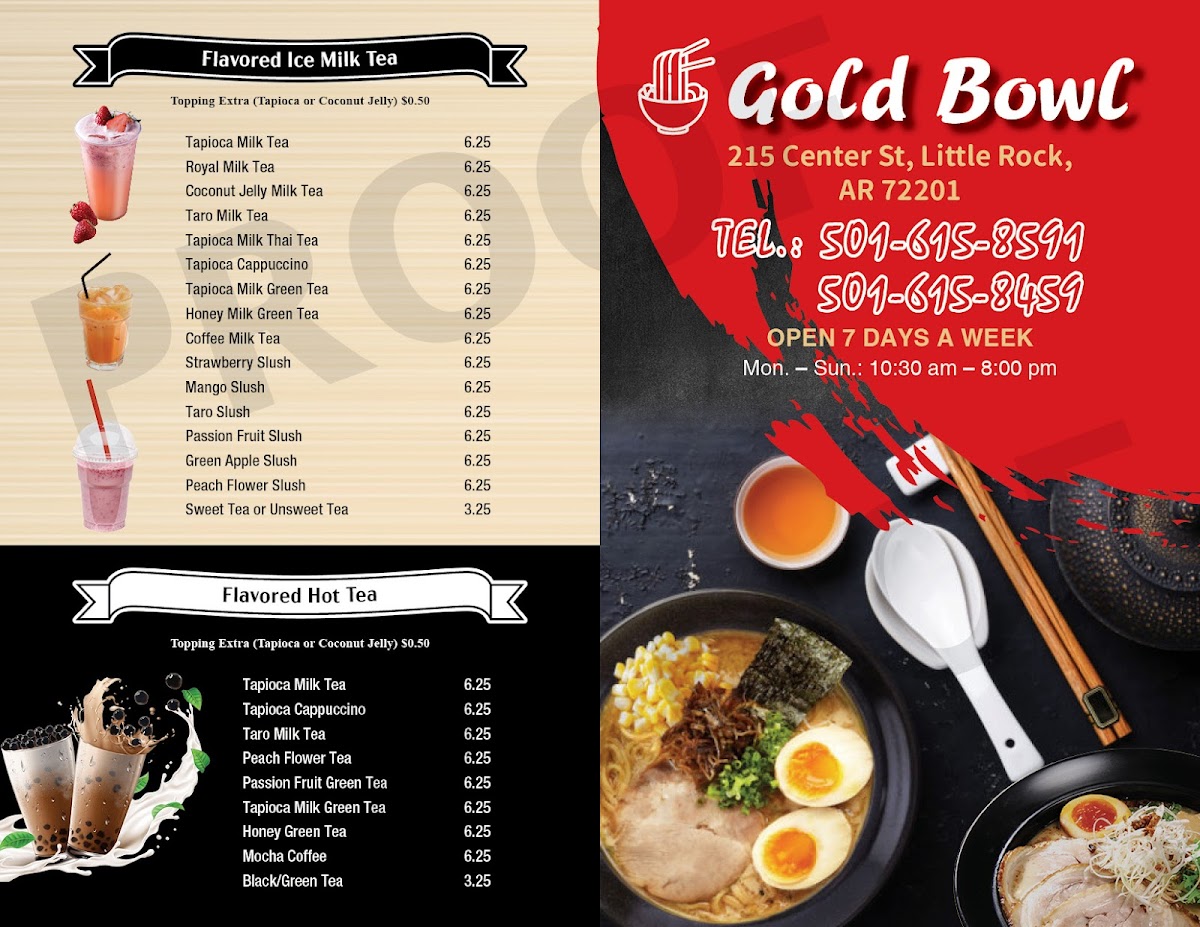 Gold Bowl offers a diverse and flavorful menu, with options that cater to a variety of tastes and preferences. For starters, patrons can enjoy appetizers such as Pork Egg Roll and Vegetable Spring Roll. The restaurant's chow options include several variations of Chow Mei Fun and Chow Fun or Udon, such as the Vegetable Chow Mei Fun and Chicken Chow Fun/Udon, with a choice of meats like shrimp, beef, and a combination of all. Additionally, their Lo Mein selections, such as Vegetable Lo Mein and Beef Lo Mein, deliver hearty, satisfying portions. For those craving a bowl of comfort, Beef Donburi and Chicken Katsu Donburi are top picks. The Fried Rice section also presents a great variety, from Vegetable Fried Rice to the Combination Fried Rice. As a refreshing drink, try one of their Flavored Ice Milk Teas, including the Tapioca Milk Tea or the Coconut Jelly Milk Tea. Ramen lovers will appreciate the Chashu Ramen or Spicy Miso Ramen. For a special treat, there are dinner combinations like the Ribeye Combo and Filet Mignon Combo. To top it off, you can indulge in satisfying entrees like General Tso's Chicken or Orange Chicken, with most of these dishes priced reasonably, like the General Tso's Chicken at $9.95. Gold Bowl delivers a delicious, affordable, and wide-ranging menu that leaves diners with plenty of delicious options to explore.
